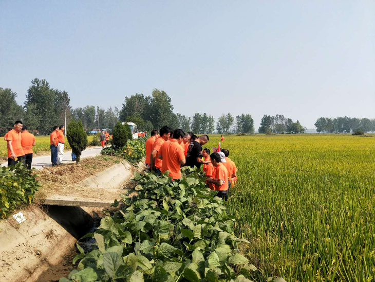 9月29日上午,浩浩蕩蕩的車隊首先開往位于霍邱官塘村的400多畝機插示范田,剛一下車,各位合作伙伴都爭相往田間走去,一睹富美占田間風(fēng)采。田間觀摩會由霍邱代理商徐玉軍主持,主要從播期、用種量、肥力運籌等方面為大家做了詳細介紹,期間不時有代理商下田數(shù)分蘗、數(shù)粒數(shù)、看結(jié)實率,對富美占田間長勢、品種表現(xiàn)贊不絕口,各縣代理商也積極組織團隊在田邊合影留念;然后車隊再次啟程前往富美占連片直播田,與對照品種相比富美占以其分蘗強、產(chǎn)量高、抗倒性好、結(jié)實率高等突出優(yōu)勢再次獲得了參會人員的一致好評。