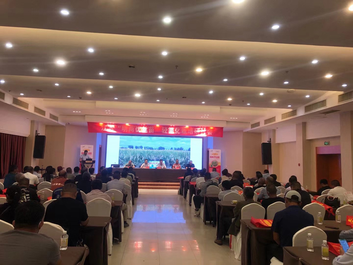 金秋九月,金黃的稻谷隨著秋風翻起金波,豐收在即。公司于9月28日-29日在江蘇省泗陽縣新世界大酒店隆重召開 “明兩優絲苗”輕簡化栽培研討會暨田間觀摩會議。會議有幸邀請到泗陽縣農業農村局陳春化局長致辭,泗陽縣作栽站范輝站長參加;參加會議的還有江蘇明天種業科技股份有限公司副總經理胡玉成、總經理助理楊海波及公司代表,各縣市經銷商、種植大戶、育秧合作社代表共計200余人參加會議。