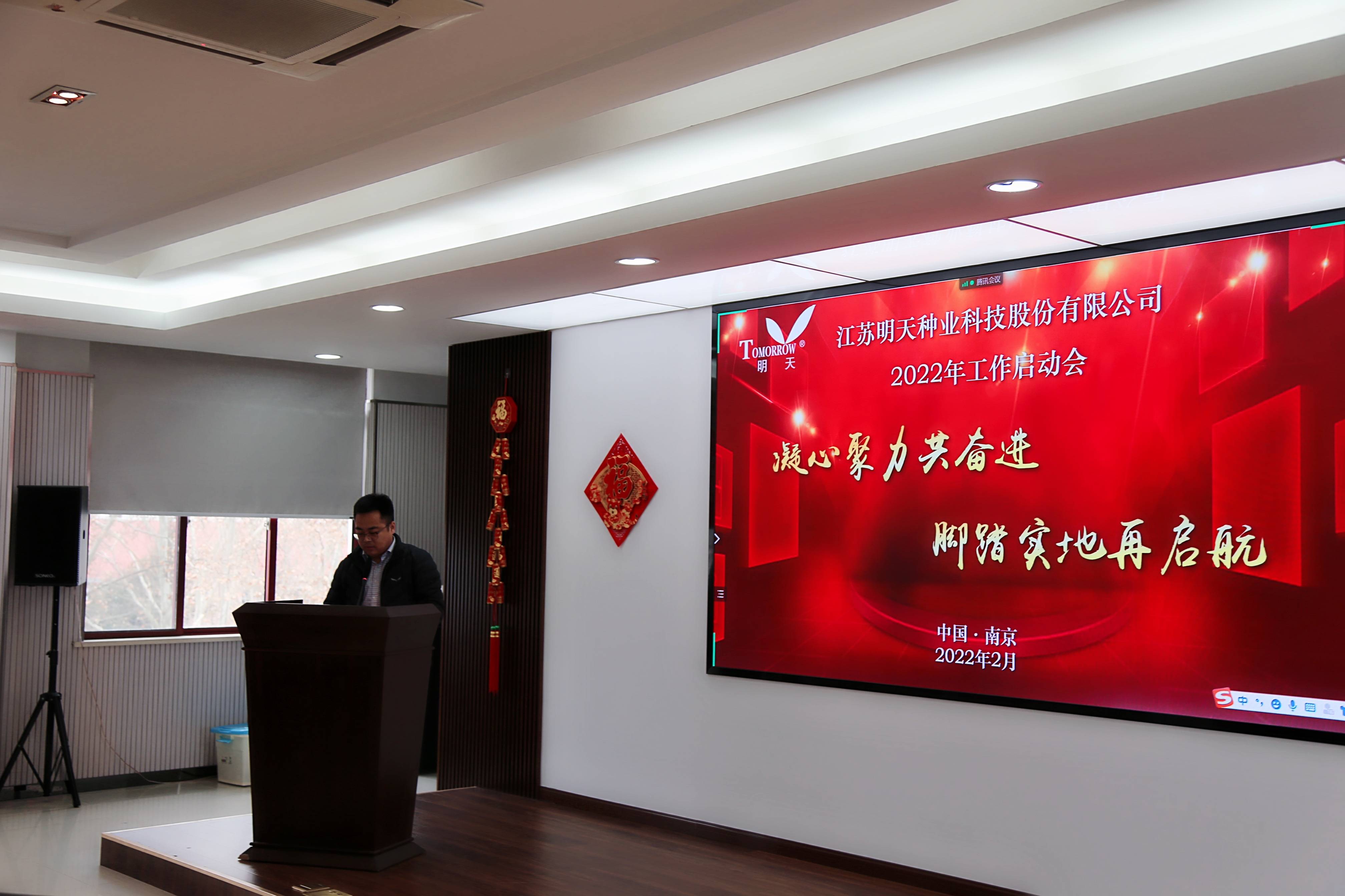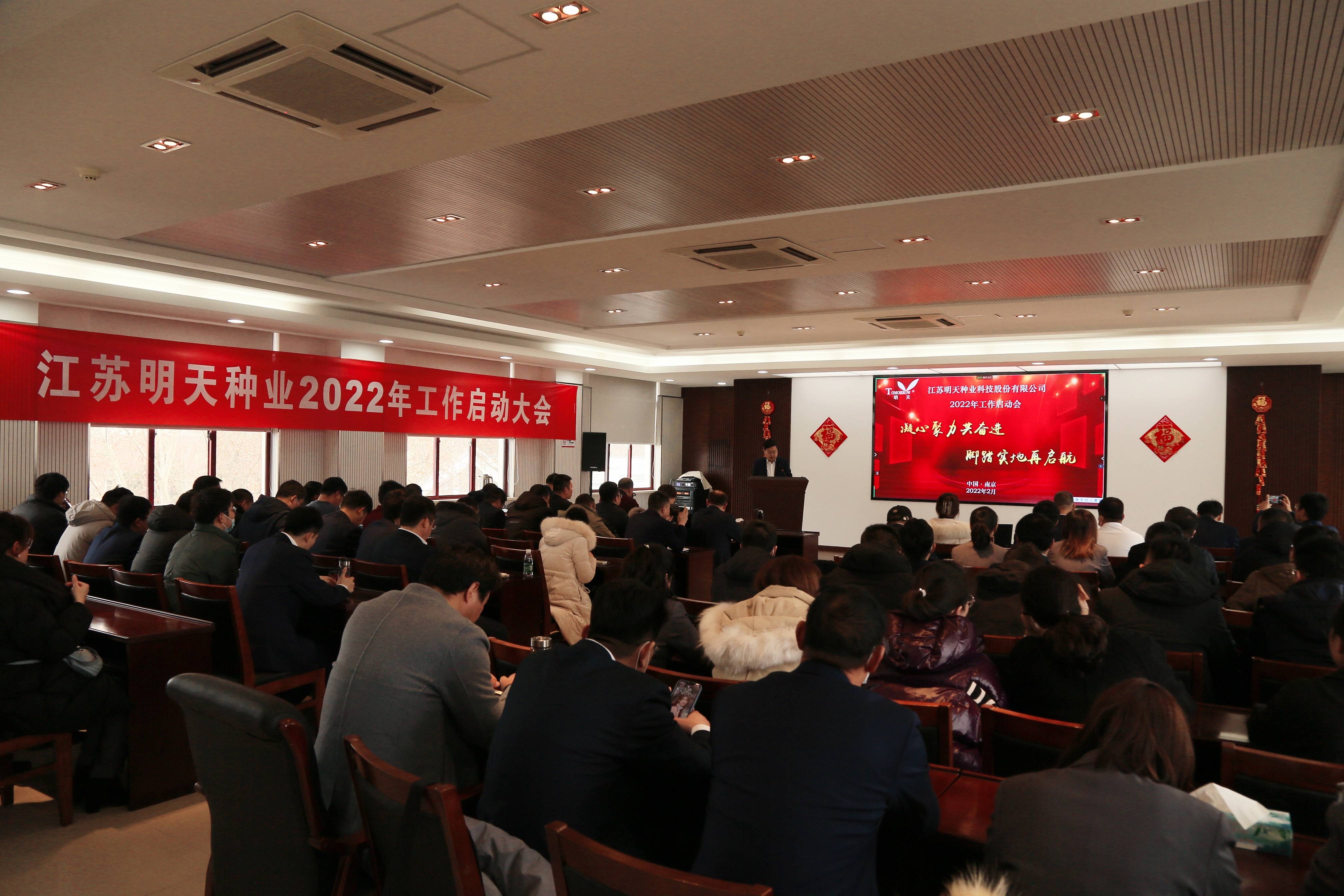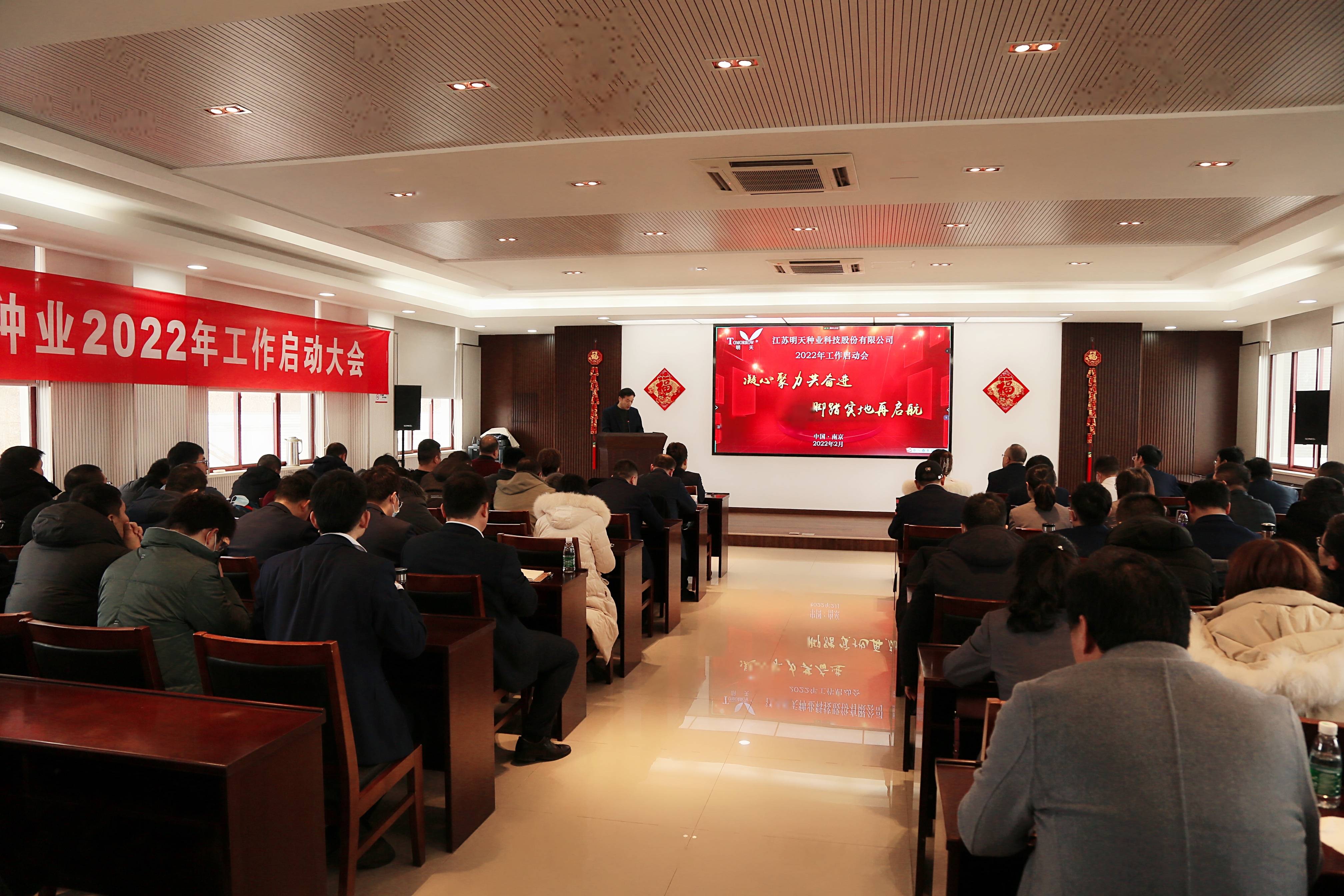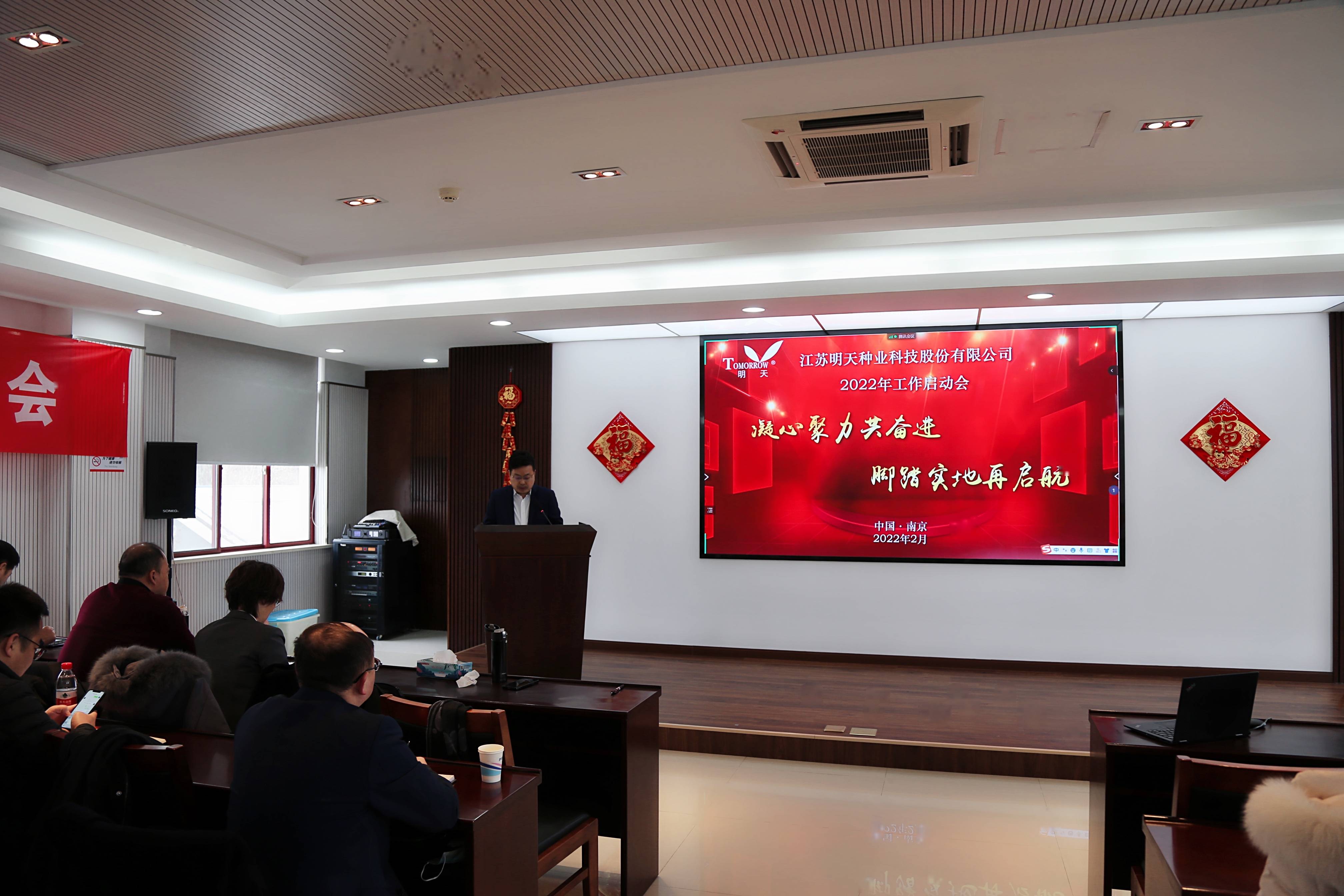 萬物逢春可復蘇,天道酬勤鑄不凡!新年伊始,為淡化節(jié)日氛圍,盡快投入工作狀態(tài),2月17日,明天種業(yè)在江蘇省農(nóng)科院糧食所會議室召開了2022年工作啟動大會,會議由副總經(jīng)理胡玉成主持,嚴輝民總經(jīng)理作了“凝心聚力共奮進·腳踏實地再起航”的動員報告。公司全體員工、子公司經(jīng)理層及2021年度先進和優(yōu)秀員工參加了本次會議。