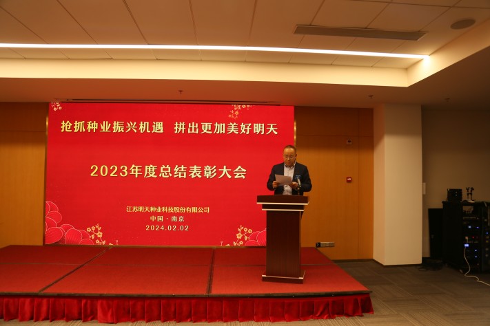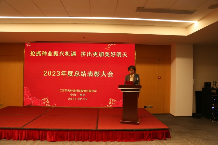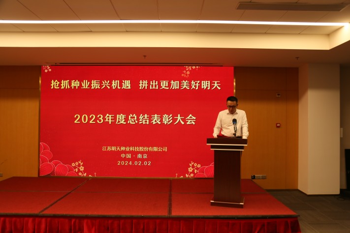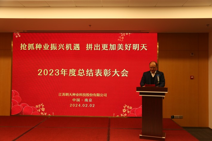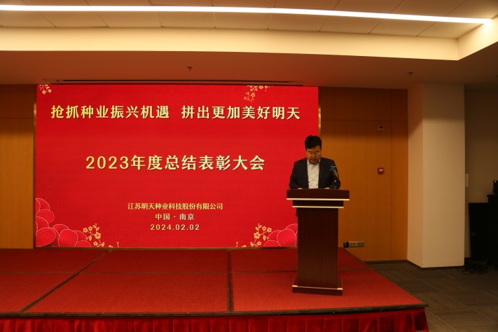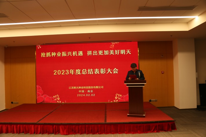 “春耕夏耘,秋收冬藏”,2月2日江蘇明天種業(yè)全體人員齊聚南京圣和文化交流中心隆重召開2023年度總結(jié)表彰大會。公司全體領(lǐng)導(dǎo)班子成員、2023年度先進(jìn)和優(yōu)秀員工代表及子公司員工等160余人參加了會議,會議由公司副總經(jīng)理胡玉成主持。