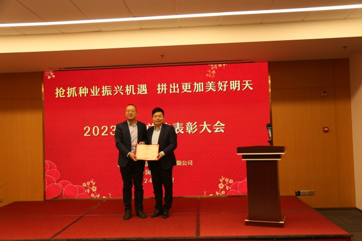 嚴(yán)總在工作報告中2023年是全面貫徹落實(shí)黨的二十大精神的開局之年,也是國家步入實(shí)施種業(yè)振興的第三年,回望這一年,種業(yè)振興圍繞種業(yè)全鏈條各環(huán)節(jié)深入推進(jìn),產(chǎn)業(yè)鏈、創(chuàng)新鏈、政策鏈不斷完善,為“三年打基礎(chǔ)”任務(wù)的完成奠定了堅(jiān)實(shí)支撐。國家在種業(yè)振興行動中取得了一批標(biāo)志性成果和階段性進(jìn)展。我們也在這一年中收獲了累累碩果。這一年,我們的銷售額和利潤再一次取得雙突破,實(shí)現(xiàn)五連增。這一年,國家領(lǐng)導(dǎo)人到公司科研基地調(diào)研,為公司發(fā)展帶上新高度。這一年,我們主持和參與了國家重大科技專項(xiàng)項(xiàng)目三項(xiàng),成功抓住種業(yè)振興發(fā)展機(jī)遇。這一年,我們進(jìn)行了全面股改后的第一次分紅,穩(wěn)定了團(tuán)隊(duì),提升了士氣,促進(jìn)了發(fā)展。這一年,我們金湖產(chǎn)業(yè)園順利投產(chǎn)試運(yùn)營,項(xiàng)目實(shí)施進(jìn)展處于全國前列。這一年,我們自主選育12個新品種通過審定,科技創(chuàng)新工作再創(chuàng)佳績。